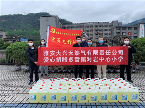 4月4日,城投公司下屬子公司雅安大興天然氣有限責(zé)任公司到多營鎮(zhèn)對巖中心小學(xué)開展愛心捐贈活動,此次活動共捐贈消毒液50余桶,主要用于校園內(nèi)防疫消殺,確保學(xué)校安全復(fù)學(xué)。