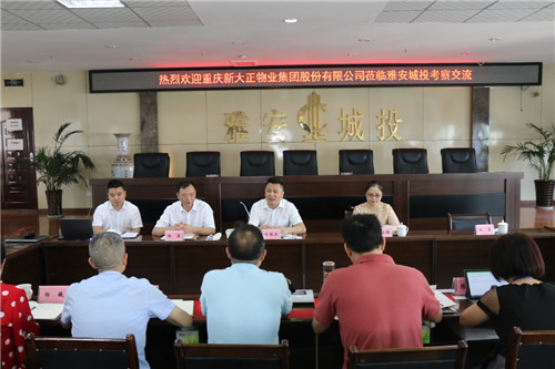 7月2日,重慶新大正物業(yè)集團股份有限公司助理總裁田維正一行到城投公司考察交流。市國資委、保安公司、城投公司、國資公司、蜀天物業(yè)相關(guān)負(fù)責(zé)人參加座談。