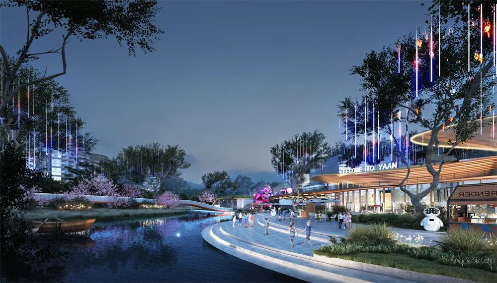 結(jié)合“雅樂(lè)匯”服務(wù)商業(yè)空間,打造夢(mèng)幻的戶 外水幕劇場(chǎng)、休閑水岸、藝術(shù)燈光營(yíng)造,展現(xiàn)出人文星河、商旅共榮、生機(jī)同棲的盛世畫(huà)卷,在這里感受雅安的風(fēng)物、人文意趣,感知雨潤(rùn)雅安帶來(lái)的萬(wàn)物豐澤、盛世民安。