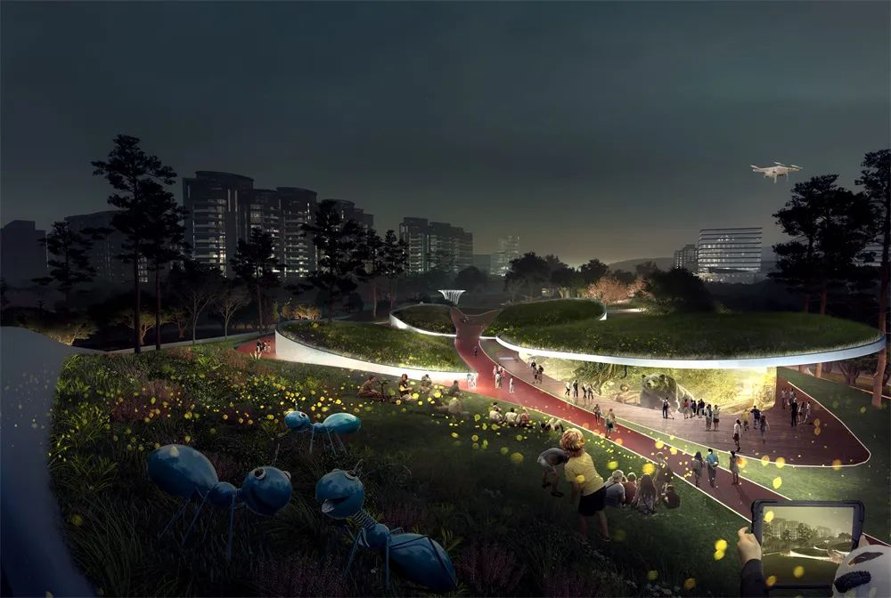 場(chǎng)地內(nèi)契合并延續(xù)雅安的精神文化,通過(guò)融入生態(tài)游覽、體育拓展、文創(chuàng)產(chǎn)業(yè)、休閑娛樂(lè)等類型豐富的活動(dòng)作為文化觸媒;館陳科普、水幕電影、主題裝置體驗(yàn)游線……,在這里策劃多元化的文化活動(dòng),將雅安生物多樣性置入到景觀當(dāng)中,在設(shè)計(jì)中運(yùn)用現(xiàn)代多媒體技術(shù)、智慧生態(tài)技術(shù)等手段將生物的生命故事通過(guò)視、聽(tīng)、嗅、觸等形式真實(shí)的呈現(xiàn)在大眾眼前,最大程度上的激發(fā)人們對(duì)生物物種多樣性的興趣,從而進(jìn)一步使保護(hù)生物多樣性深入人心。