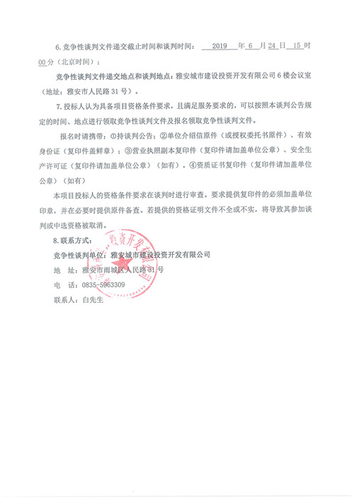 雅安市隴西河景觀天橋工程競爭性談判公告