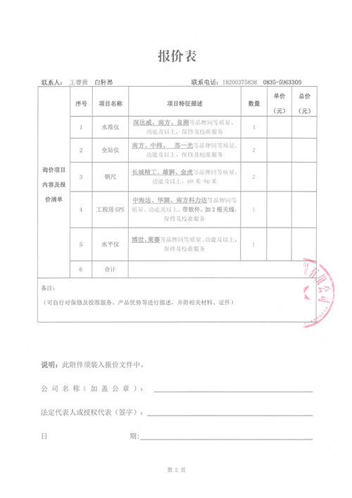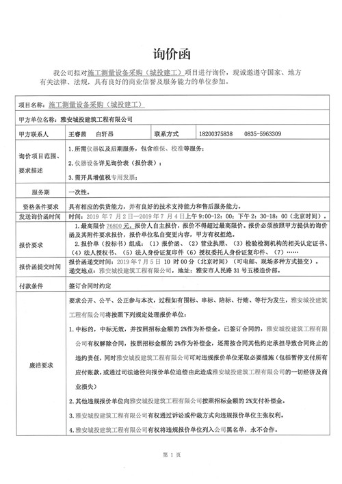 詢價(jià)函 施工測(cè)量設(shè)備采購(城投建工)