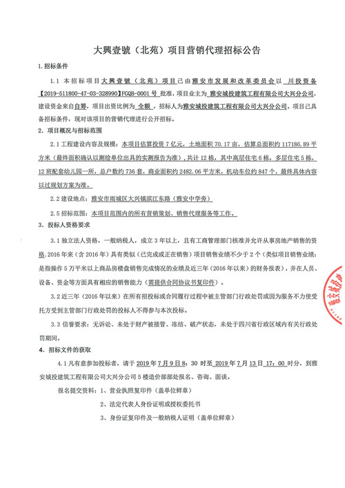 大興壹號(hào)(北苑)項(xiàng)目營(yíng)銷代理招標(biāo)公告