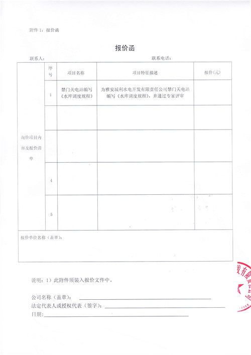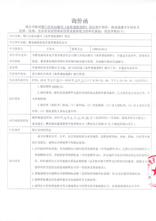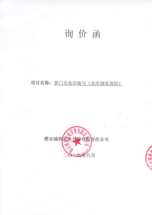 雅安城利水電開發(fā)有限責任公司禁門關(guān)電站編寫《水庫調(diào)度規(guī)程》競爭性談判公告