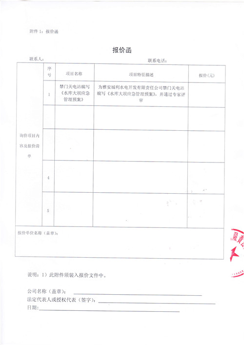 詢價函(《水庫大壩應急管理預案》)