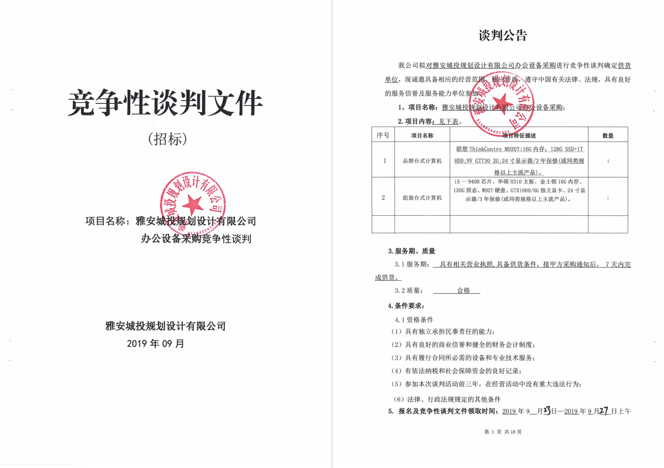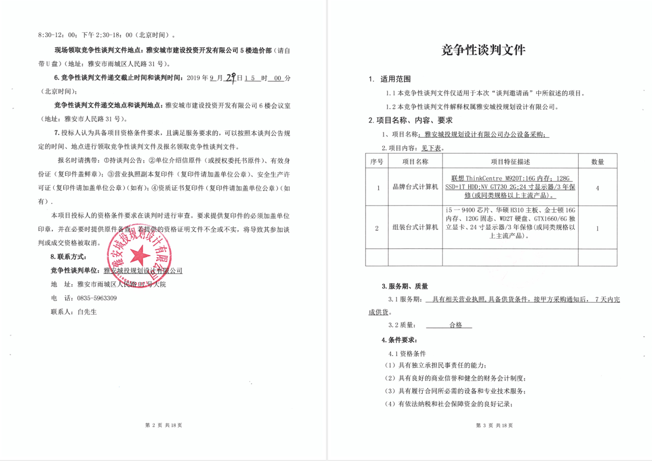 雅安城投規(guī)劃設(shè)計(jì)有限公司辦公設(shè)備采購進(jìn)行競(jìng)爭(zhēng)性談判的公告