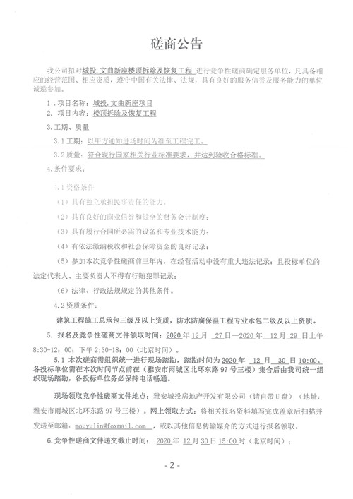 城投·文曲新座樓頂拆除及恢復工程競爭性磋商公告