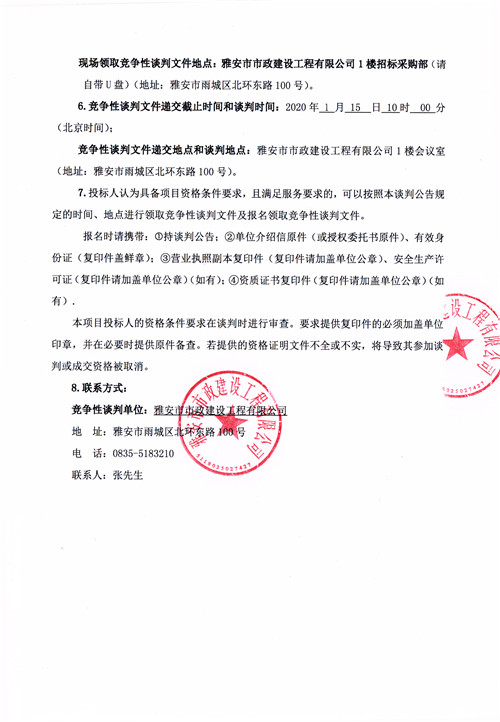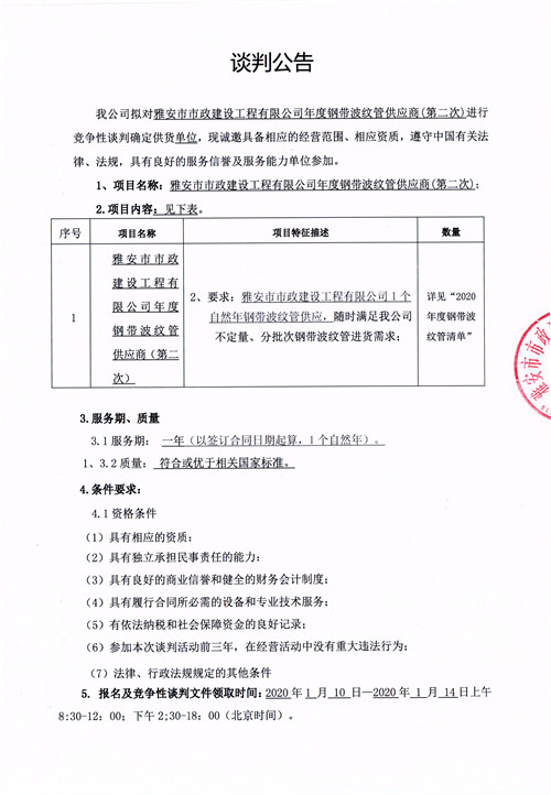 雅安市市政建設(shè)工程有限公司年度鋼帶波紋管供應(yīng)商競(jìng)爭(zhēng)性談判公告(第二次)