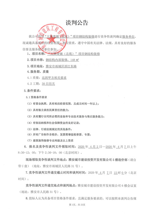 城投建工“大興壹號(北苑)”項(xiàng)目鋼結(jié)構(gòu)裝修競爭性談判公告