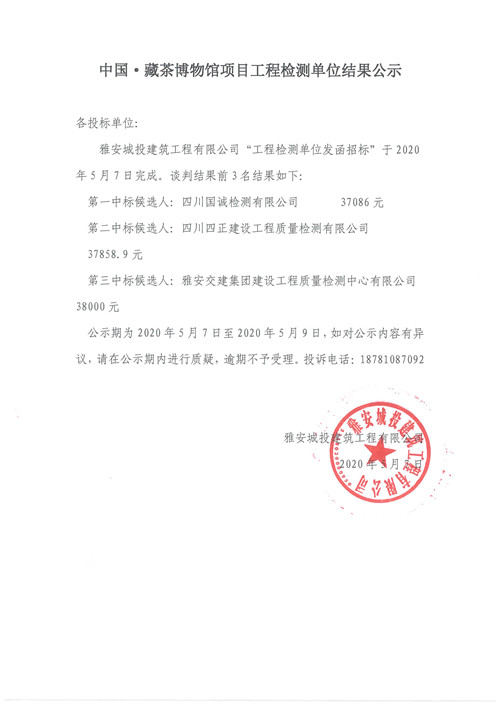 城投建工公司中國(guó)·藏茶博物館項(xiàng)目工程檢測(cè)單位結(jié)果公示