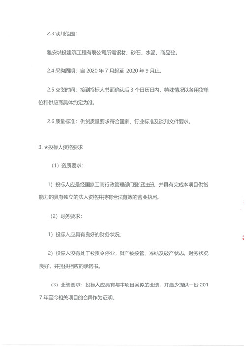 2020年7月-9月城投建筑工程有限公司鋼材、砂石、水泥、商品砼集中采購(gòu)供應(yīng)商競(jìng)爭(zhēng)性資格談判公告
