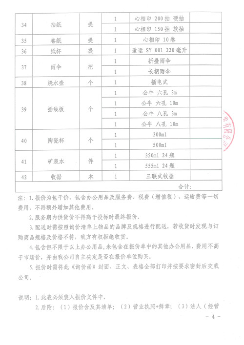 雅安城市建設(shè)投資開發(fā)有限公司辦公用品詢價(jià)