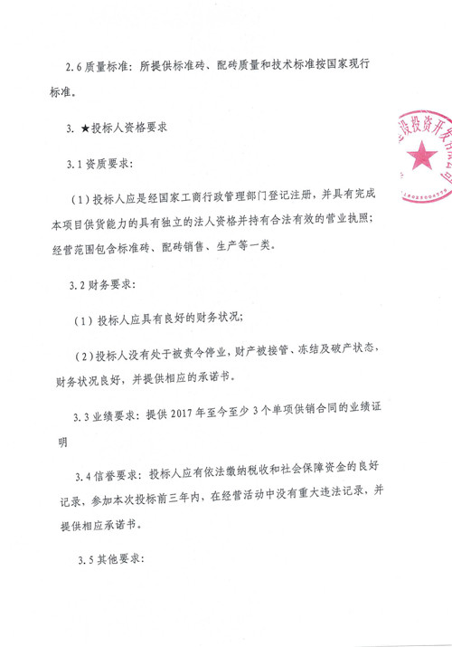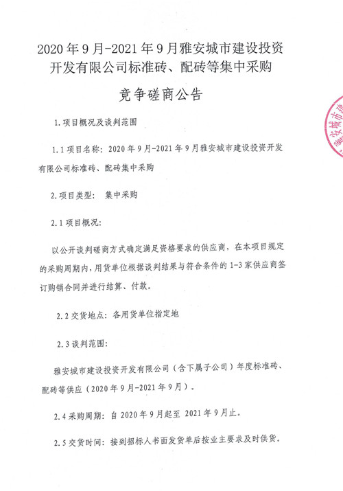 2020年9月-2021年9月雅安城市建設(shè)投資開發(fā)有限公司標(biāo)準(zhǔn)磚、配磚等集中采購 競爭磋商公告