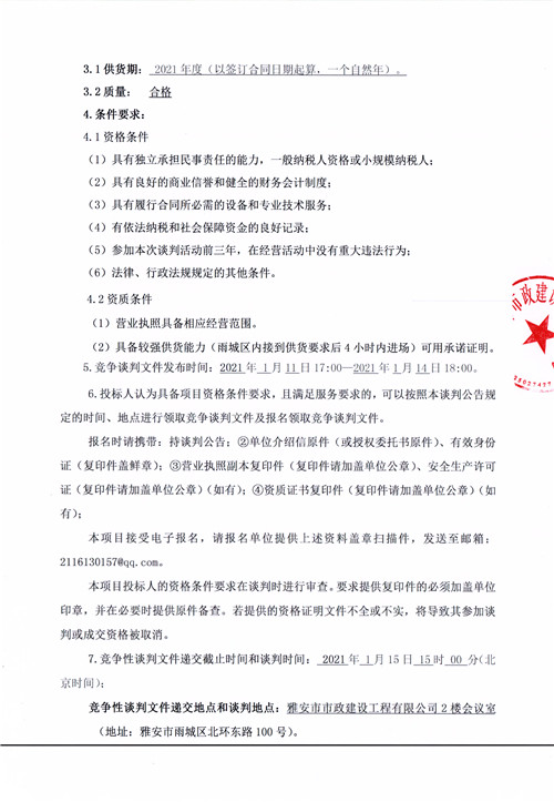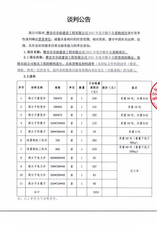 雅安市市政建設(shè)工程有限公司2021年井圈井蓋采購項目競爭性談判公告