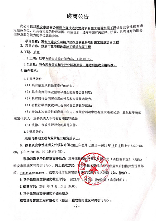 城投建工公司雅安市建安公司棚戶(hù)區(qū)改造安置房項(xiàng)目施工通道加固工程競(jìng)爭(zhēng)性磋商公告