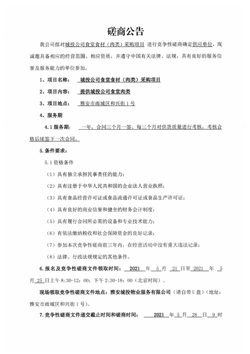 城投物業(yè)關(guān)于城投公司食堂食材(肉類)采購項(xiàng)目競爭性磋商公告