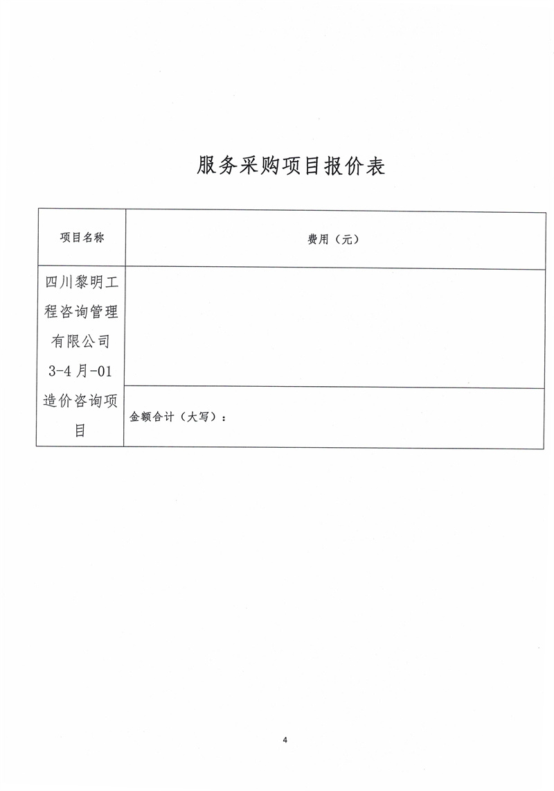 四川黎明工程咨詢管理有限公司3-4月-01造價(jià)咨詢項(xiàng)目詢價(jià)采購(gòu)函