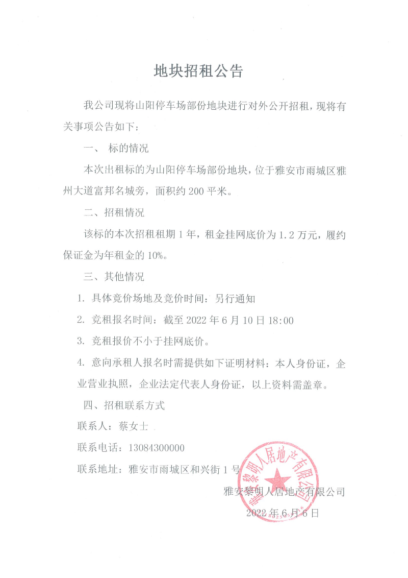 山陽(yáng)停車場(chǎng)部分地塊對(duì)外招租公告