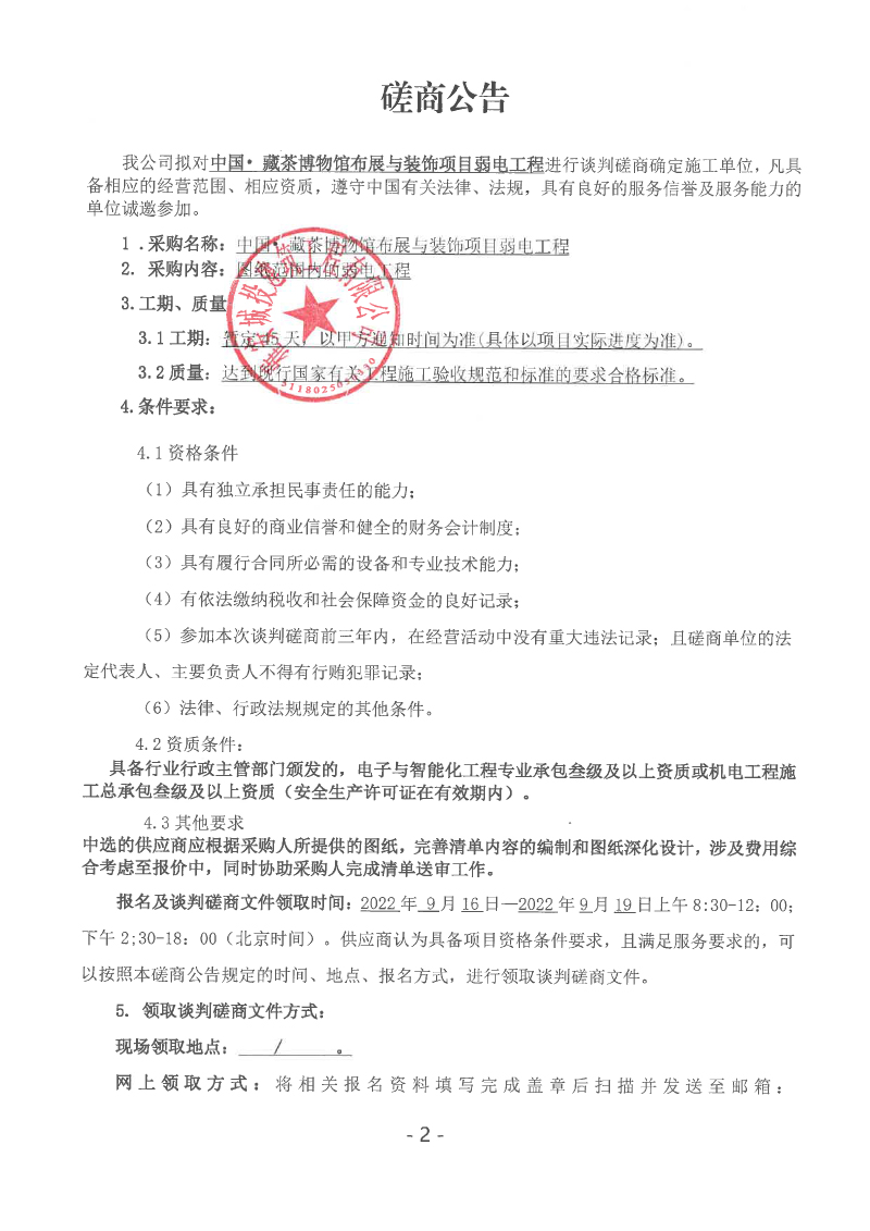 中國• 藏茶博物館布展與裝飾項目弱電工程談判磋商公告