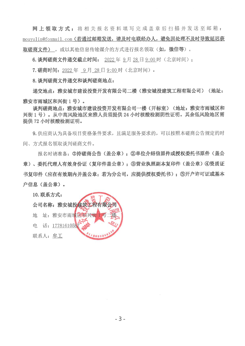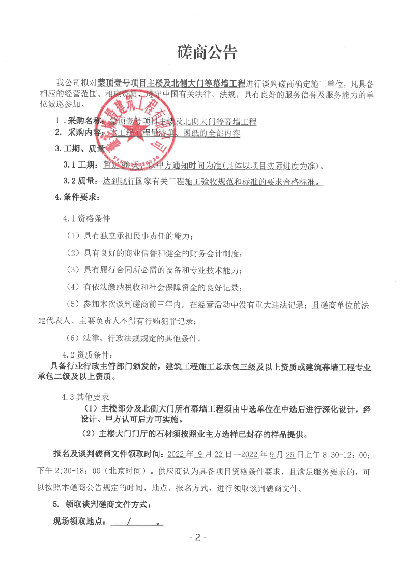 蒙頂壹號(hào)項(xiàng)目主樓及北側(cè)大門等幕墻工程談判磋商公告