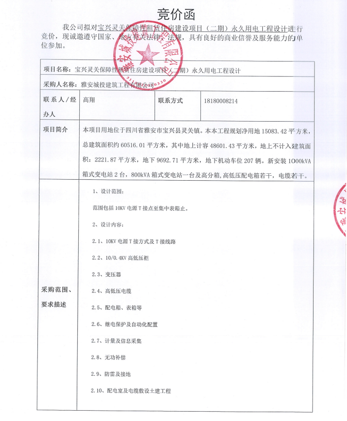 寶興縣靈關(guān)保障性租賃住房建設(shè)項(xiàng)目(二期)永久用電工程設(shè)計(jì)競價(jià)公告