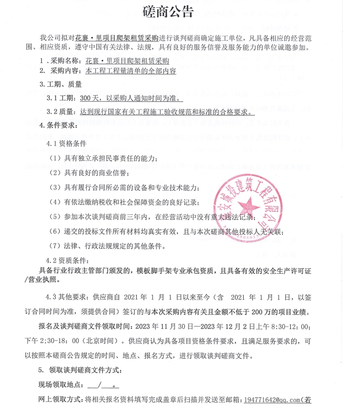花襄·里項目爬架租賃采購磋商公告