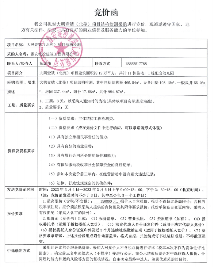 大興壹號(北苑)項(xiàng)目結(jié)構(gòu)檢測競價(jià)采購競價(jià)公告
