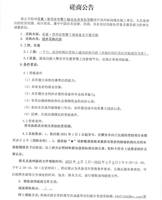 花襄·里項(xiàng)目智慧工地設(shè)備及安裝采購(gòu)磋商公告