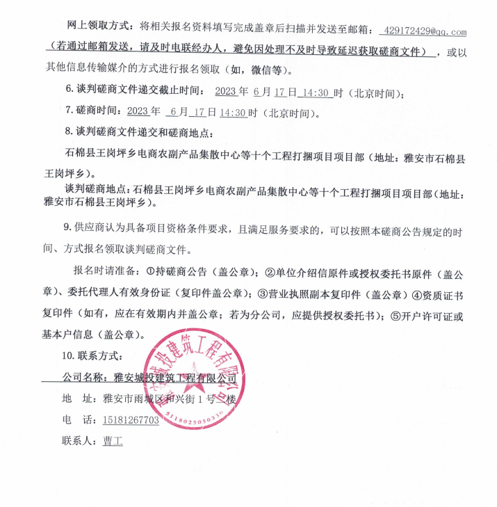 石棉縣王崗坪鄉(xiāng)電商農(nóng)副產(chǎn)品集散中心等十個(gè)工程打捆項(xiàng)目鋼管、扣件租賃談判磋商公告