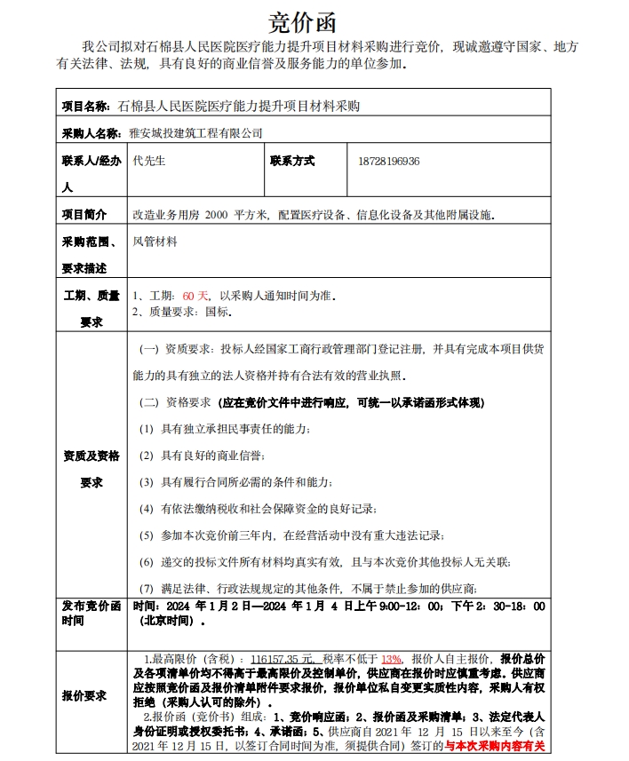 石棉縣人民醫(yī)院醫(yī)療能力提升項(xiàng)目材料采購競價公告