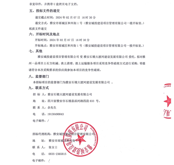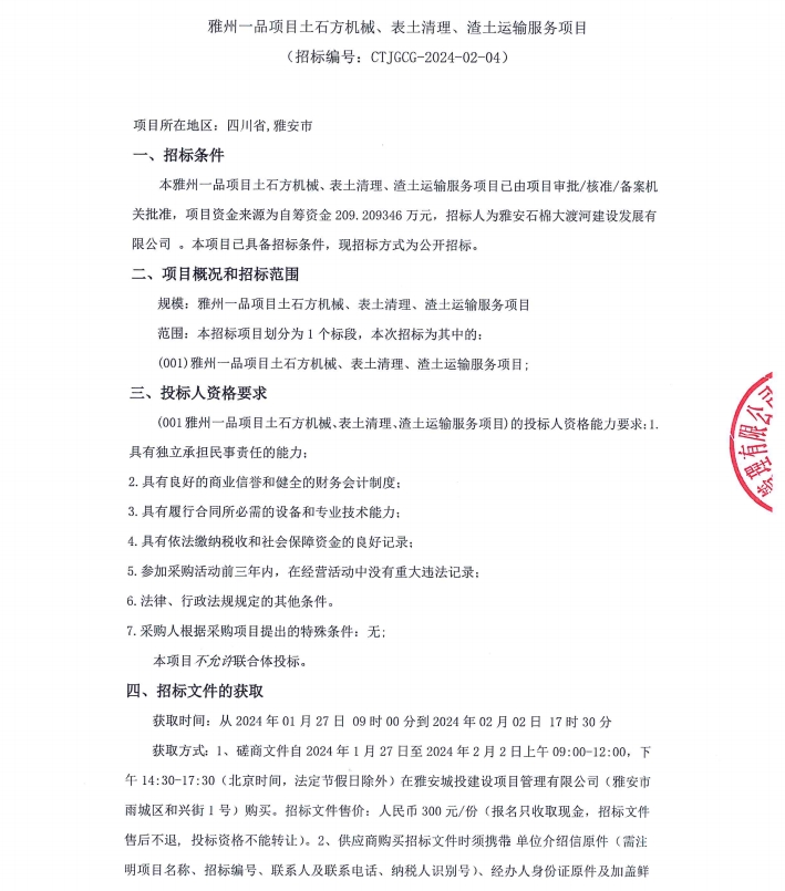雅州一品項目土石方機械、表土清理、渣土運輸服務項目公告