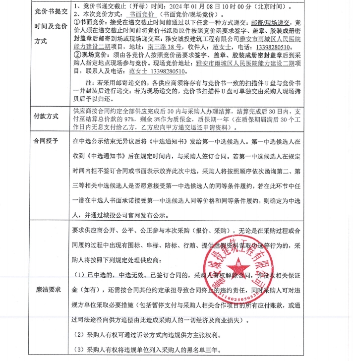 雅安市雨城區(qū)人民醫(yī)院能力建設(shè)二期項目警務(wù)室、崗?fù)げ少徃們r公告