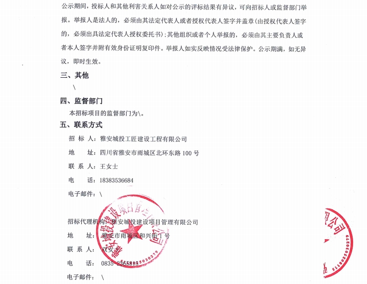 雅安市大興生態(tài)旅游建設(shè)項(xiàng)目欄桿采購項(xiàng)目(第二次)中標(biāo)候選人公示