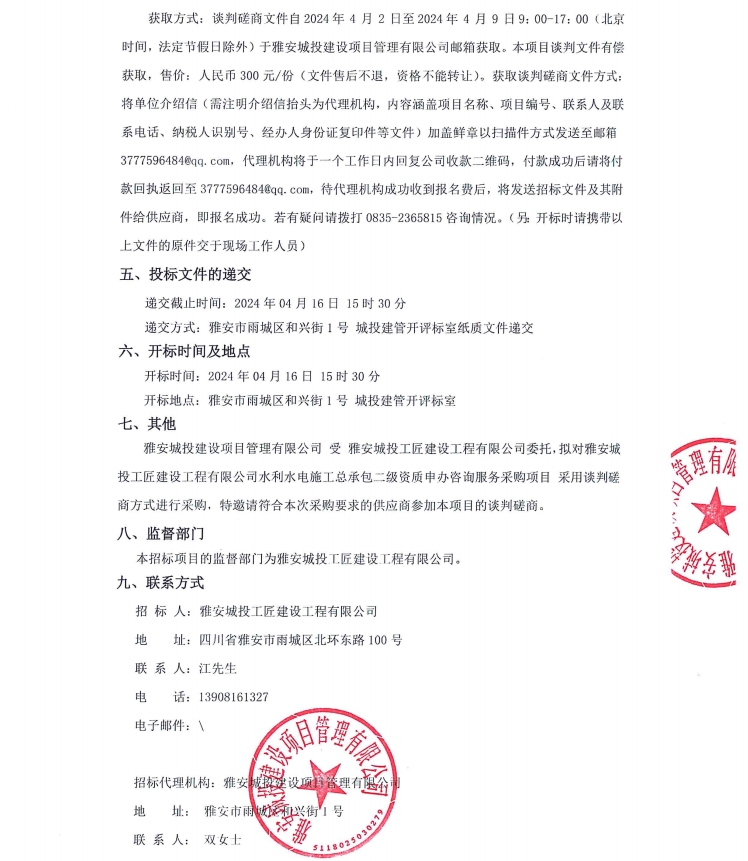 雅安城投工匠建設(shè)工程有限公司水利水電施工總承包二級(jí)資質(zhì)申辦咨詢服務(wù)采購(gòu)項(xiàng)目公告