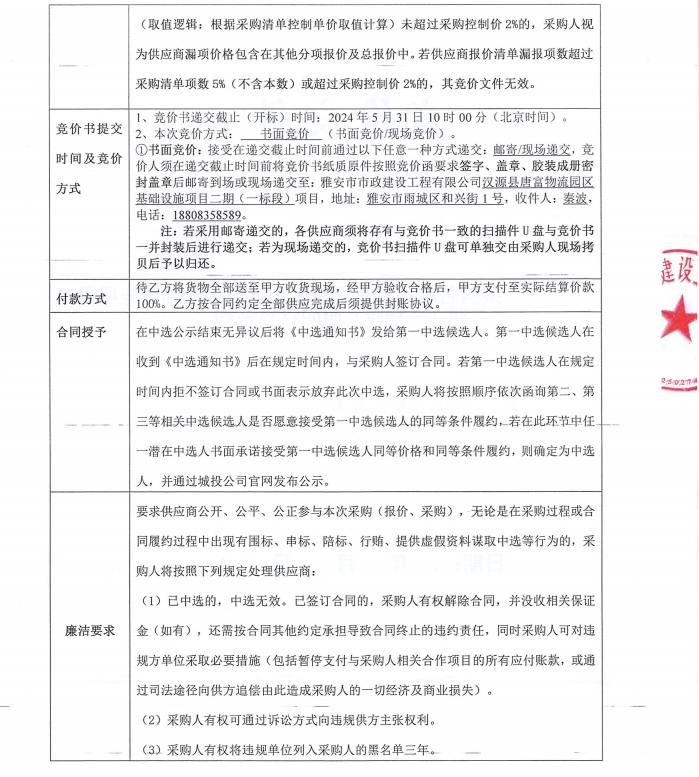 漢源縣唐富物流園區(qū)基礎(chǔ)設(shè)施項(xiàng)目二期(一標(biāo)段)照明材料采購競價(jià)公告