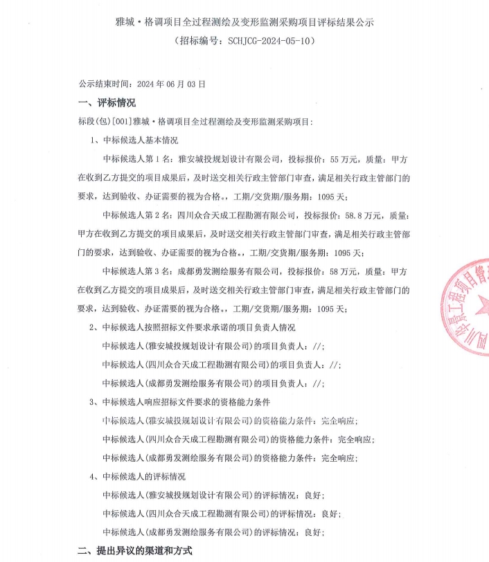 雅城·格調(diào)項目全過程測繪及變形監(jiān)測采購項目評標結果公示