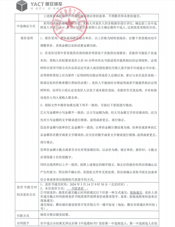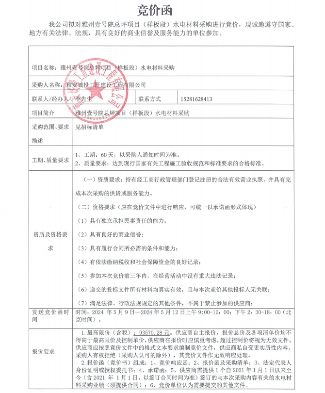 雅州壹號(hào)院總坪項(xiàng)目(樣板段)水電材料采購競(jìng)價(jià)公告