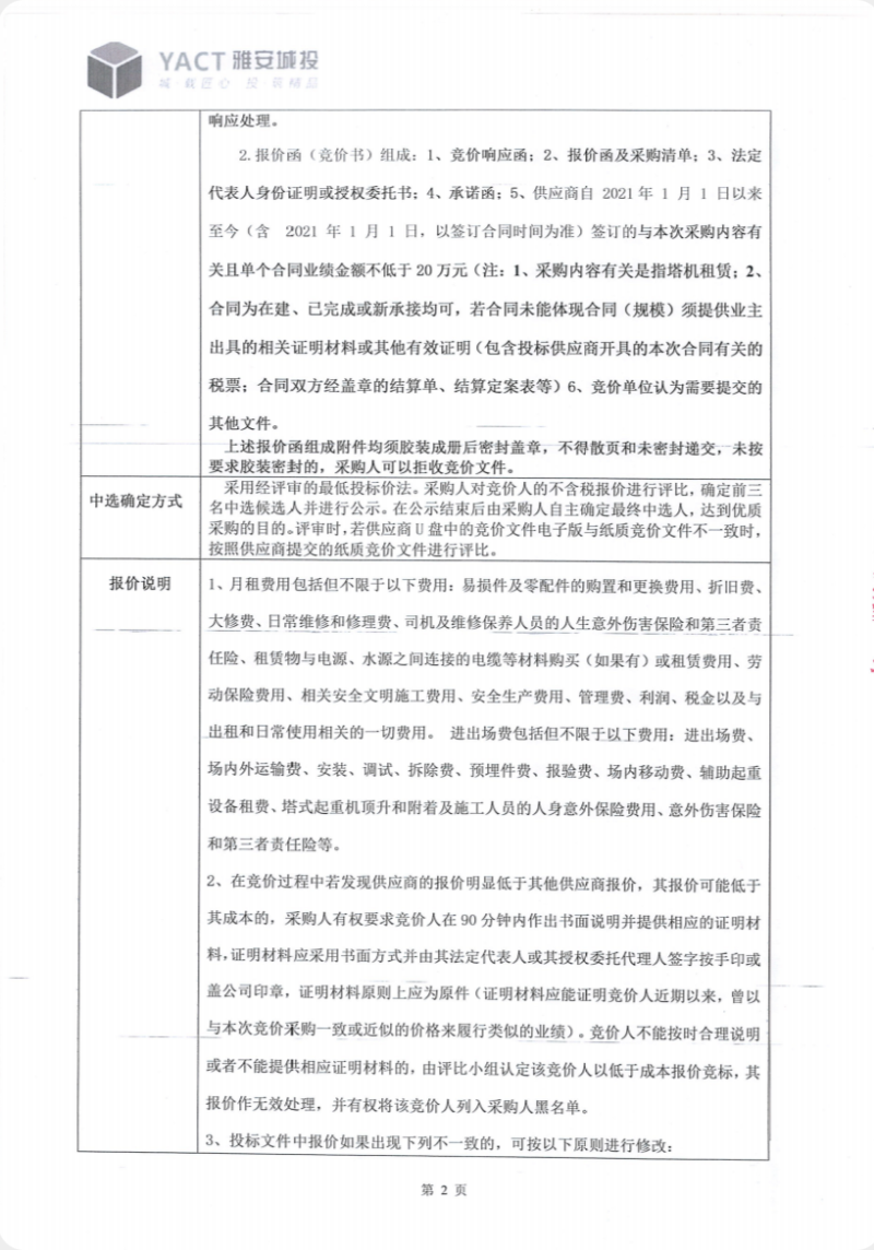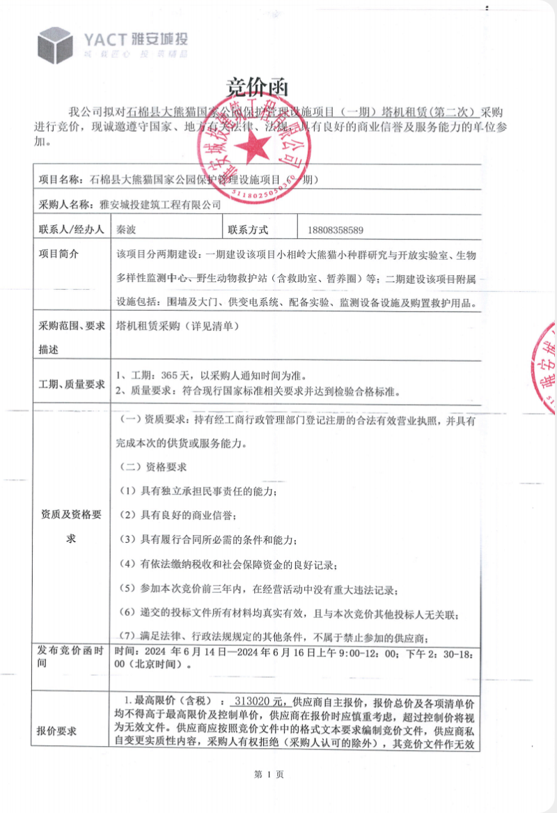 石棉縣大熊貓國家公園保護管理設(shè)施項目(一期)塔機租賃(第二次)競價公告