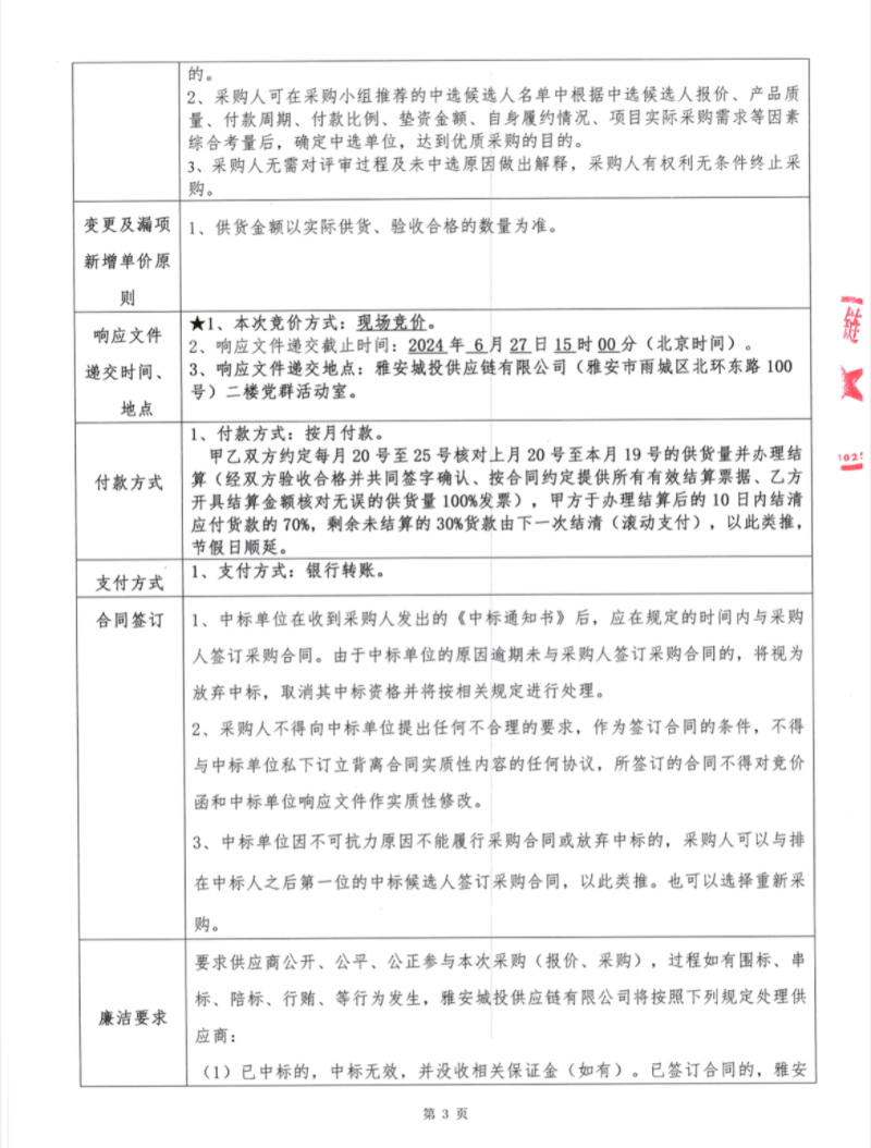 雅安城投供應(yīng)鏈有限公司級配碎石采購競價公告