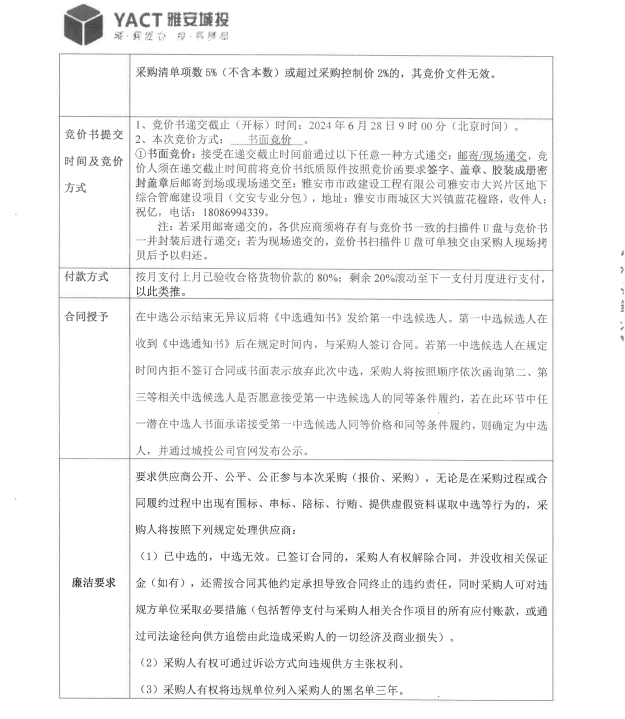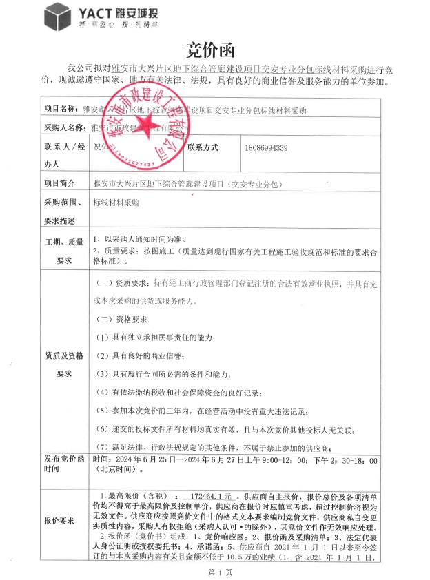 雅安市大興片區(qū)地下綜合管廊建設(shè)項(xiàng)目交安專業(yè)分包標(biāo)線材料采購競(jìng)價(jià)公告