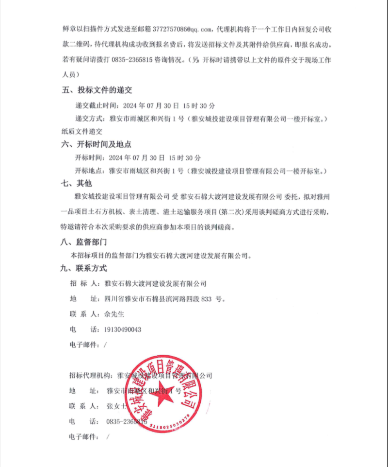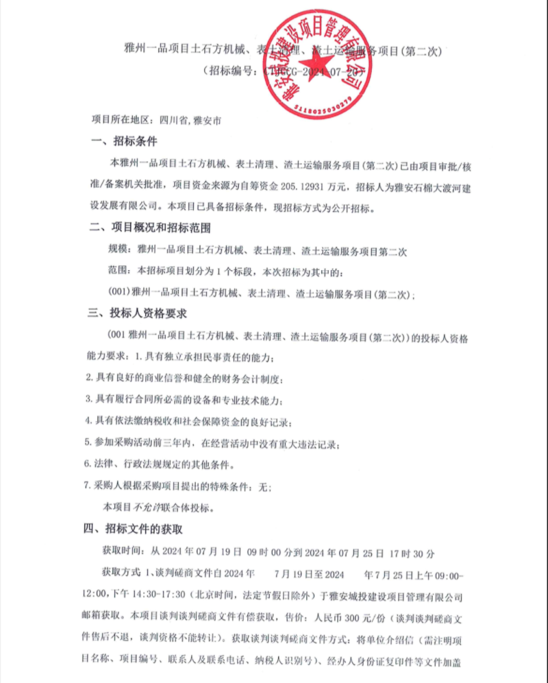 雅州一品項目土石方機(jī)械、表土清理、渣土運輸服務(wù)項目(第二次)公告