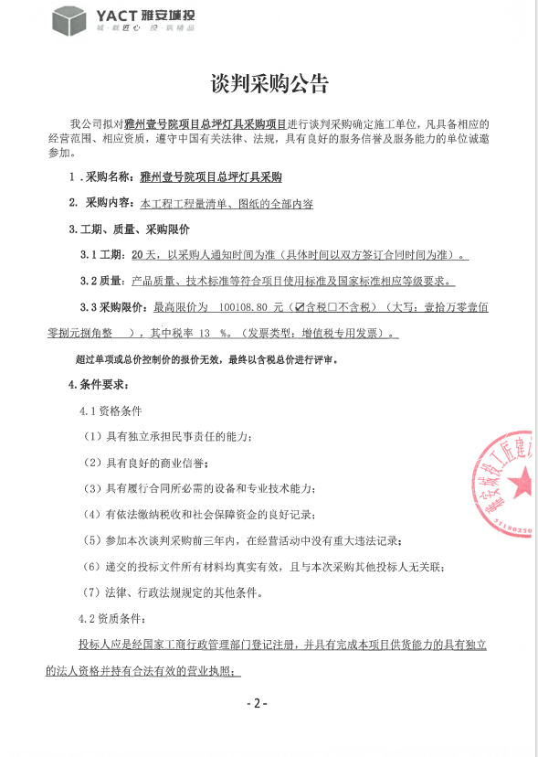 雅州壹號院總坪燈具談判采購文件